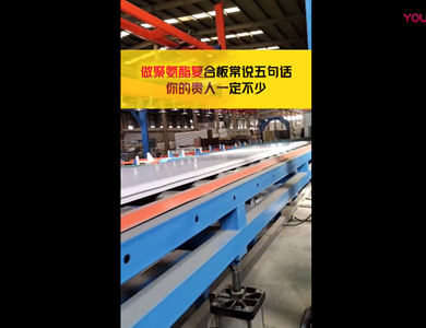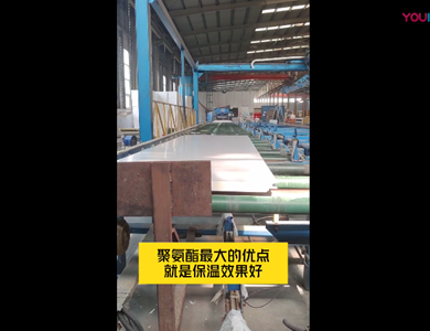 我們公司引進意大利賽浦連續生產線,采用了六組份在線工業微機自動操作(SIEMENS)混合澆注技術。生產流程分為開卷覆膜—壓制成型—鋼板預熱—高壓發泡—高溫固化—鋸切—板材冷卻—碼垛—自動打包等功能與一體的自動化生產線,年生產能力為130萬平方米。